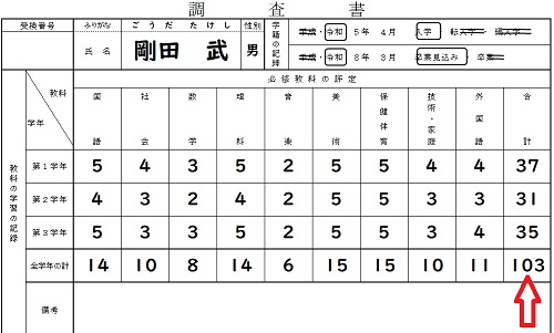 調査書の最重要項目である『必修教科の評定』、いわゆる内申点のこと。