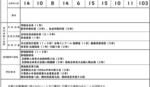 調査書に記載されている、
