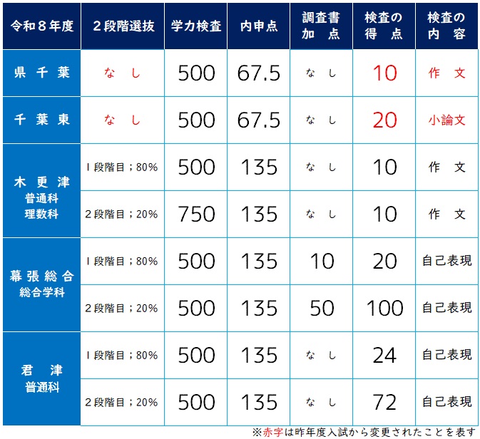木更津・幕張総合・君津の3校は、変更ナシです。