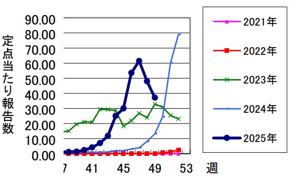 ※千葉県全体の平均は報告数 37.08 なので、実はまだ警報発令中