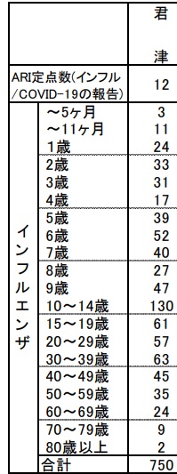 君津エリアは、県内でもっともインフルエンザが流行している地域になっているようです。