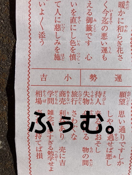 まぁ、凶よりはいいね、うん。