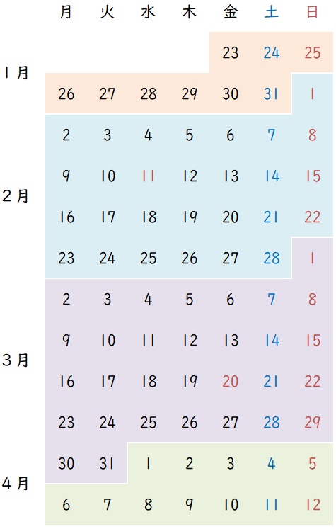 下のカレンダーを見てください。