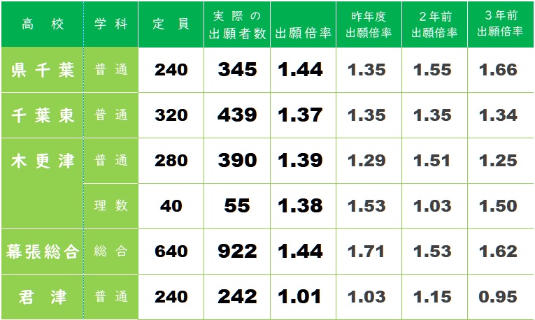それでは内房エリアの上位校の倍率をチェックしましょう。