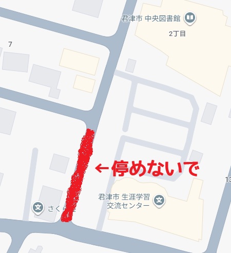 さくら塾と図書館の間にある道は、実は駐車禁止区間です。