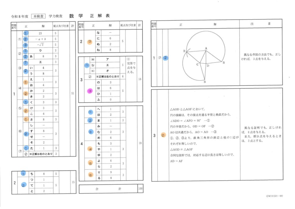 しかし、(4)①②,(5)②,(6)①の4問は、ミスした人がかなりいると思われる。(4)はいい問題、これこそが「思考力を問う問題」なのでは。中2生は挑戦してみてほしい。