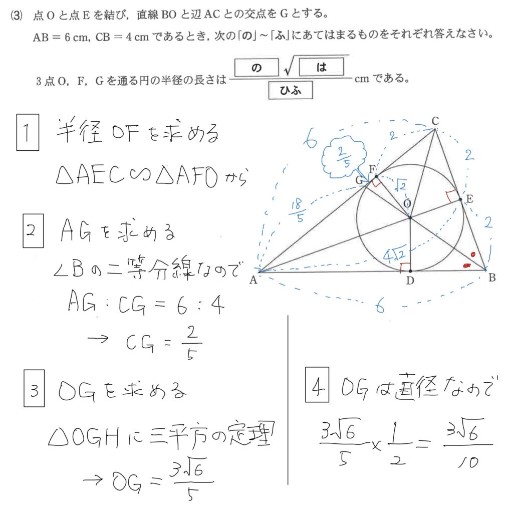 ∠Bの二等分線なので、最初にAGを求めてしまうのもアリですな。