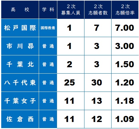 ※昨年度の船橋法典では、募集人員19人に対して出願36人の 1.89倍でしたが、そのうち17人が志願変更して確定倍率はぴったり 1.00倍になりました