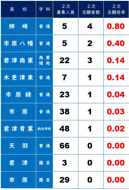令和8年度千葉県公立入試、全日制では、59校95学科で2次募集を行います。