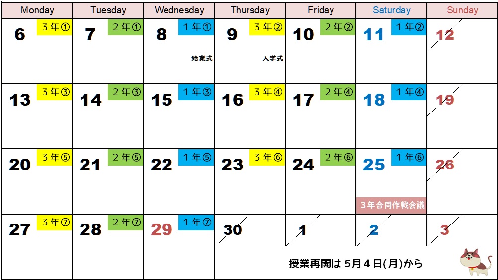 4月度の授業予定は以下のとおりです。